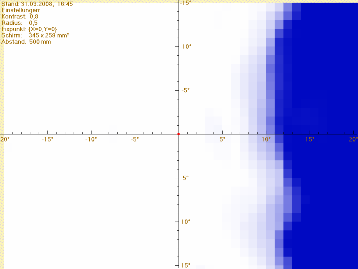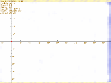 15.06.2008: Die letzte derzeit mögliche Einstellung mit meiner Hardware (TFT-Monitorgröße 17") ist erreicht und ermöglicht Übungen bis knapp über 60°. Dieser Bereich ist nun erreicht und wurde auch durch eine augenärztliche Untersuchung mit Gesichtsfeldmessung bestätigt.